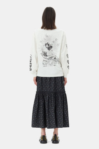 This Black Floral Printed Maxi Skirt features an elastic waist and tiered skirt. DETAILS - 100% organic cotton. Learn more about our materials - Lining composition: 100% Recycled Polyester - Elastic waist - Tiered skirt Made in: India Product ID: W0308 SIZE & FIT - Regular fit - Paulina is 5’10” and wears a size US 4