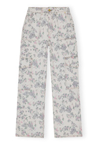 These Floral Printed Angi Jeans Jeans feature a 5-pocket style with a zip and button closure, belt loops, cargo pockets on the lower leg and a GANNI logo at the back pocket. DETAILS - 100% organic cotton. Learn more about our materials - 5 pocket style with a zip and button closure - GANNI Logo Made in: Turkey Product ID: J1508 SIZE & FIT - Straight fit - Mona is 5’9” and wears a size 27