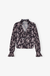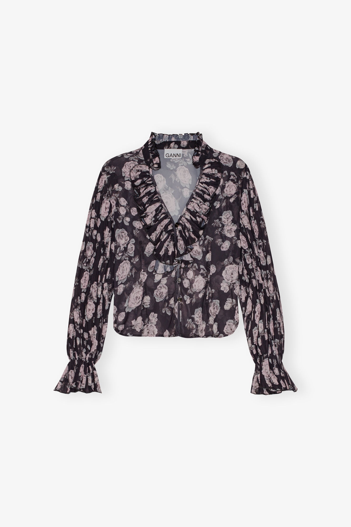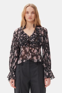 FLORAL PRINTED PLEATED GEORGETTE BLOUSE