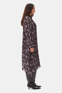 FLORAL PRINTED PLEATED GEORGETTE MIDI DRESS