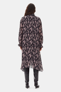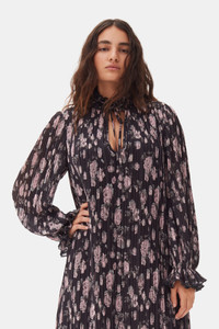 This Floral Printed Pleated Georgette Midi Dress features a high neck with a tie detail and keyhole cutout and has long sleeves with elasticated cuffs and a ruffle trim. DETAILS - 100% recycled polyester. Learn more about our materials - Lining composition: 100% Recycled Polyester - High neck with a tie detail and keyhole cutout - Long sleeves with elasticated cuffs and ruffle trim Made in: India Product ID: F9551 SIZE & FIT - Designed for a regular fit - Marimar is 5’9” and wears a size US 4