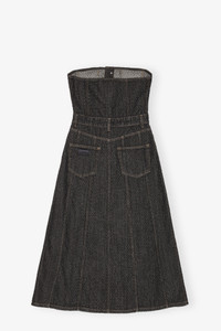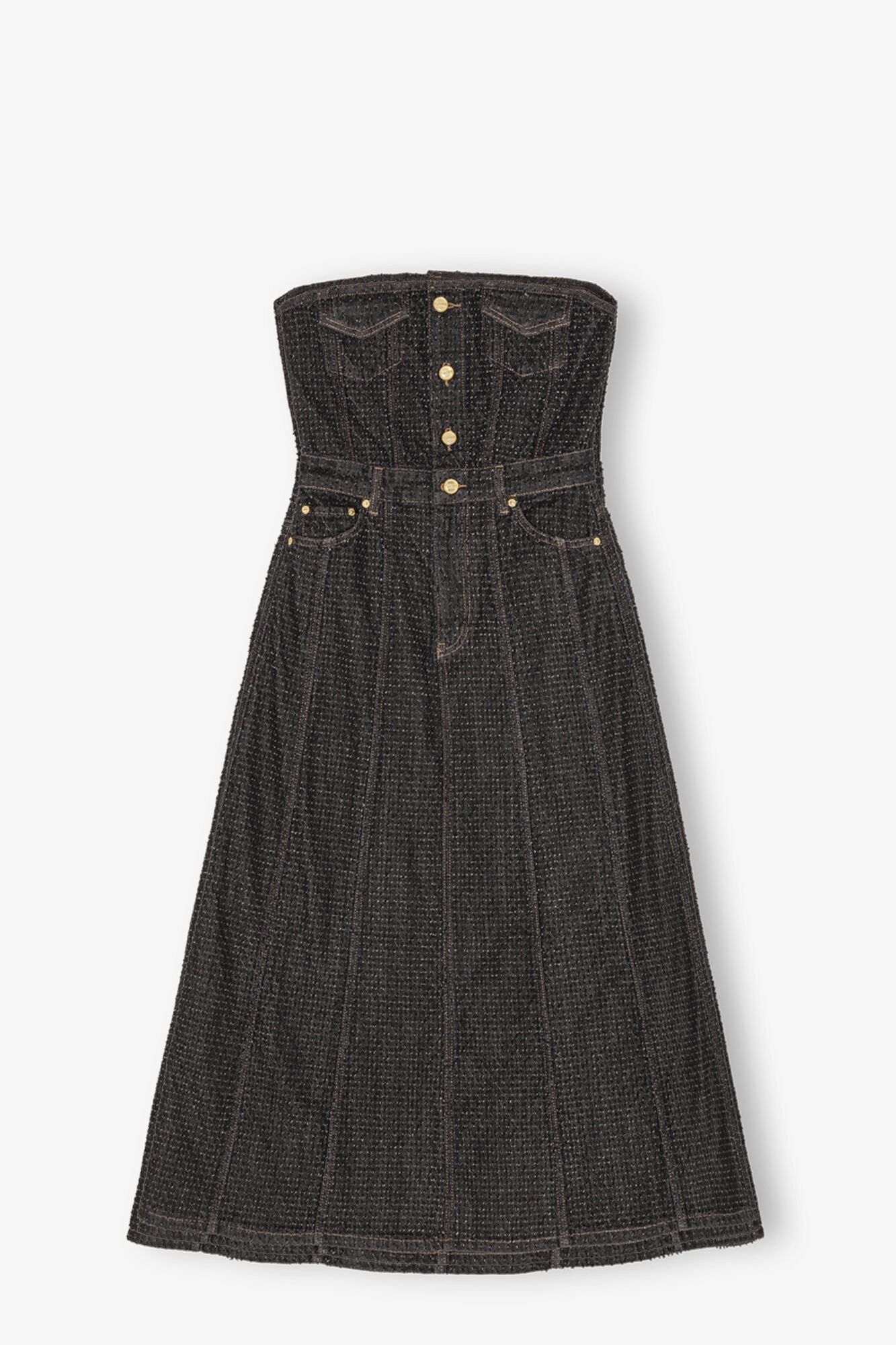 BLACK FLUFFY DENIM CORSAGE DRESS