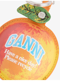 PRODUCT DETAILS - GANNI leather-blend coin purse - 65% leather, 19% polyurethane, 16% polyester; lining 65% leather, 19% polyurethane, 16% polyester - Popper fastening - Apple shape, structured, key ring and clasp fastening at top, brand plaque and leaf applique at front, brand and text print at front, foiled branding at back, all-over flame print, all-over grained texture, silver-toned hardware, one main compartment, fully lined - Height 7.5cm, width 7.5cm, depth 3.5cm - Wipe with a clean, dry cloth Ref: R04462251