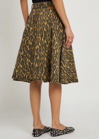 Ganni Belted Leopard-print Stretch-denim Midi Wrap Skirt