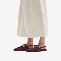 GANNI isn’t just a brand; it’s a mindset—bold, optimistic, and unapologetically playful. The Big Bow Slingback Ballerina shoes are an extra cute style to bring a feminine touch to your casual and formal looks. Detailed with a “Big Bow”, silver metal rivets and GANNI logo hardware, these ballerinas won’t just complement your outfit—they’ll make it. - 100% Recycled Polyester - Adjustable Slingback Straps - Pointed Toe - Bow Detail - Made in Portugal