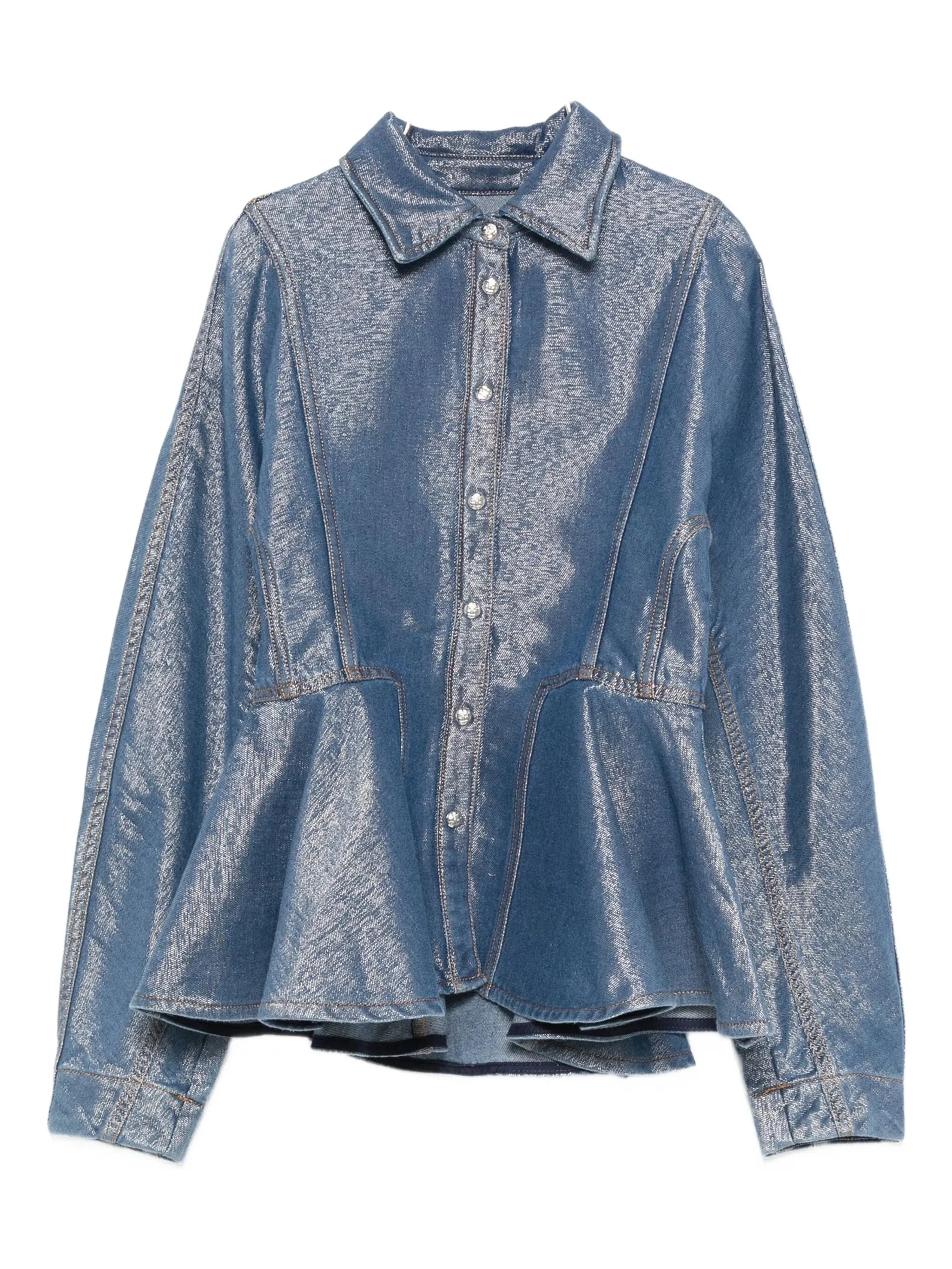 blue button fastening peplum hem long sleeves collared topstitching - Color: BLUE - Made in: Italy - Designer Style ID: J1912 566 Composition and care Organic Cotton: 82.0%, Polyester: 16.0%, Other Materials: 2.0%