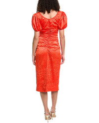 - Please note: Size selections are European. For US conversions, please reference the size chart. - Color/pattern: grenadine - Approximately 48in from shoulder to hem - Model is 5'9.5 and is wearing a size 36. Measurements may vary slightly by size. - Design details: scoop neck with self-tie detail, allover ruching, elastic puff sleeves and split back hem - Left side seam zipper closure - 95% recycled polyester, 5% elastane - Machine wash - Imported - Our products are 100% genuine. In some cases we purchase merchandise from trusted independent suppliers and not directly from the brand owner. In all cases we stand by the authenticity of every product sold on our site.