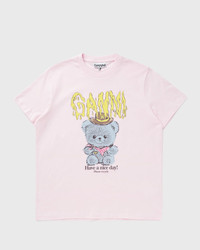 The Bear Cotton T-shirt by GANNI is a casual, short-sleeved shirt made from 100% organic cotton with a round neckline and a striking bear print that adds a playful twist to any look. The subtle Ganni logo adds signature style, while the relaxed cut makes it an ideal everyday favorite. - Round neckline - Short sleeves - Graphic print Article number: A1050074-868 Gender: women Color: CHALK PINK Material: 100% Cotton