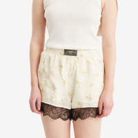 Channel relaxed elegance with GANNI’s habotai shorts. The floral print, elastic waistband and delicate lace hemline combine comfort with a touch of feminine flair. Perfect for sun-soaked days, these shorts are your go-to for laid-back, stylish moments. - 100% Viscose - Elasticated Waist - Floral Print - Lace Hem - Branded Label - Product Code: W0670-277