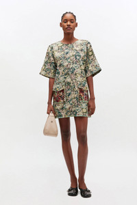 This dress feature a round neck, short sleeves, 2 pockets and an open back with tie strings. DETAILS - 30% recycled polyester, 25% recycled cotton, 22% recycled wool, 8% recycled polyamide, 8% polyacrylonitrile, 2% recycled other fibers, 5% other fibers Learn more about our materials - Lining composition: 100% Cotton - Round neck - Short sleeves - 2 pockets - Open back with tie strings Made in: Turkey Product ID: W0785 SIZE & FIT - Relaxed fit - Mini length - Yaniris is 5’11” and wears a size US 4