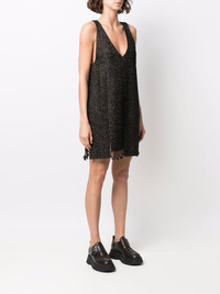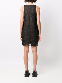 beaded step-hem shift dress black wool-recycled cotton blend herringbone step hem beaded trim detail shift style sleeveless V-neck Imported Composition Outer: Polyester 27%, Acrylic 20%, Recycled Cotton 20%, Wool 12%, Cotton 11%, Alpaca Wool 9%, Other fibres 1% Lining: Viscose 100% SIZE & FIT Model measurements Height 5 ft 9 in(1.76 m) Bust/Chest 33.07 in(84 cm) Hips 34.64 in(88 cm) Waist 25.59 in(65 cm) FittingInformation This piece fits true to size. We recommend you get your regular size Cut for a loose fit Made with a mid-weight non-stretch fabric Washing instructions Dry Clean Only
