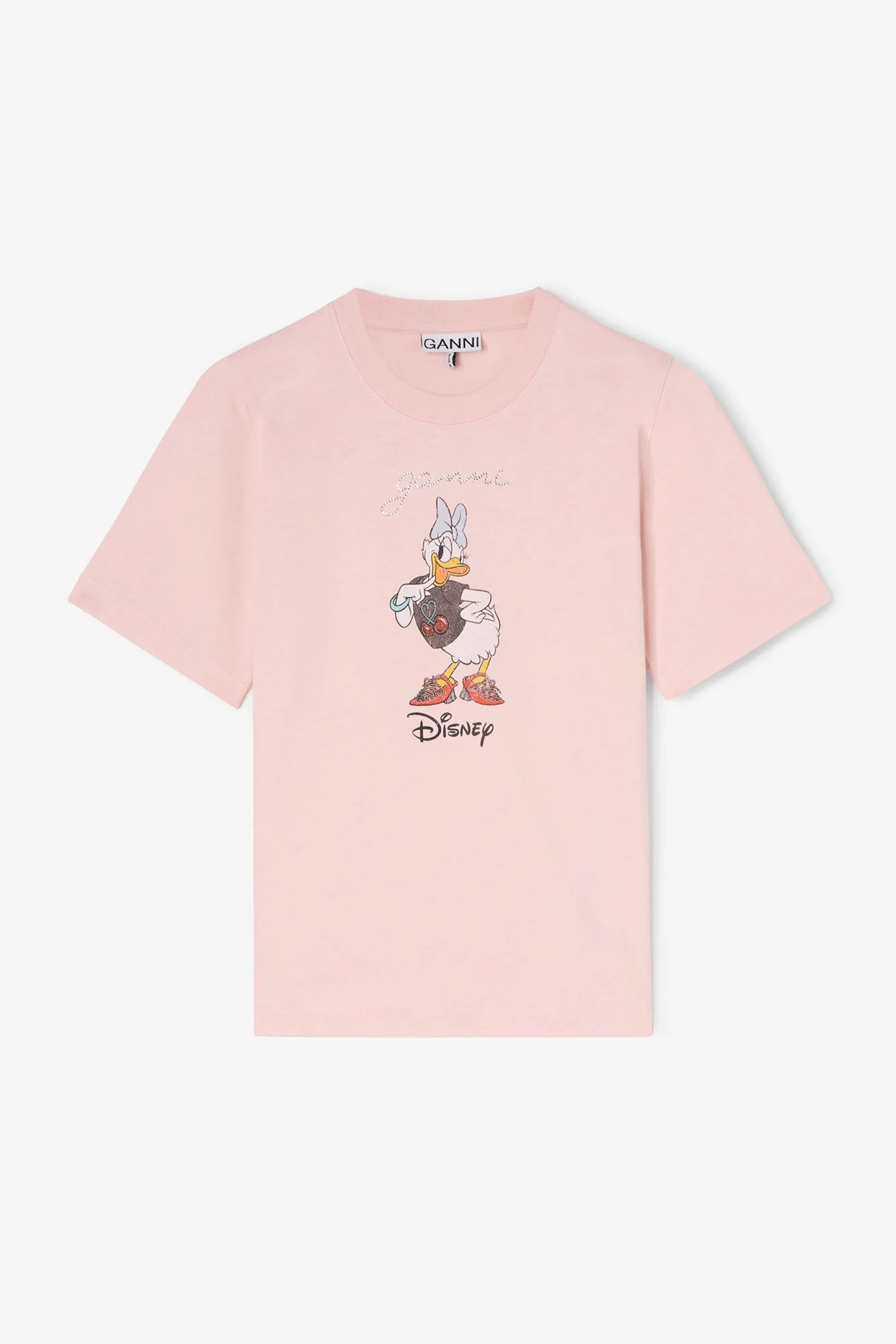 This T-shirt features a round neckline, short sleeves and a Daisy Duck print. DETAILS - 100% Organic Cotton Learn more about our materials - Round neckline - Short sleeves - Disney's Daisy Duck character print - GANNI and Disney logo - GANNI logo rhinestone embellishment Made in: Portugal Product ID: A1050103 SIZE & FIT - Slim fit