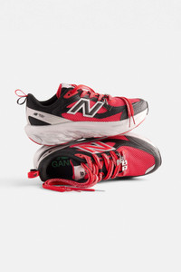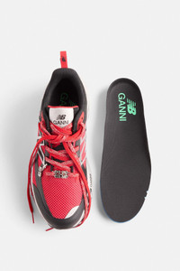 Lifestyle meets performance culminating in an authentic yet innovative new upper design, with strong NB DNA from our running 2000's archive. These GANNI x New Balance FFT Trainers come in red, black, and silver. They feature a silver embossed 'N' logo on the side, along with a woven tongue label displaying both the GANNI and New Balance logos. The shoes also include two detachable charms: one with the GANNI Butterfly logo, and the other with both the 'N' logo and a GANNI Butterfly charm, attached to the laces. DETAILS - 52% recycled polyester, 40% polyester, 8% spandex. Learn more about our materials - Lining composition: 100% Recycled Polyester - GANNI x New Balance Red and Black FFT Trainers - Red, black, and silver colour scheme - Embroidered ‘N’ logo - Lace-up closure with red-coloured laces - Chunky platform sole with textured detailing - GANNI Butterfly charm attached to the laces - Detachable GANNI Butterfly and NB logo charms Made in: Vietnam Product ID: S2950