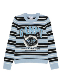 striped top Highlights - Blue - Stripe pattern - Patterned jacquard - Round neck - Long sleeves - Ribbed hem Imported Composition Wool 45%, Recycled Wool 35%, Recycled Polyamide 20% SIZE & FIT Model measurements Height 5 ft 9 in(1.76 m) Bust/Chest 31.88 in(81 cm) Hips 35.43 in(90 cm) Waist 24.8 in(63 cm) Washing instructions Hand Wash
