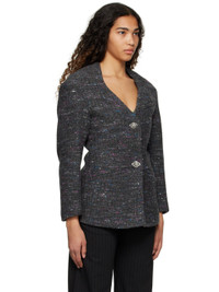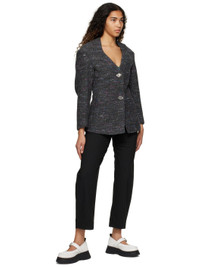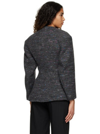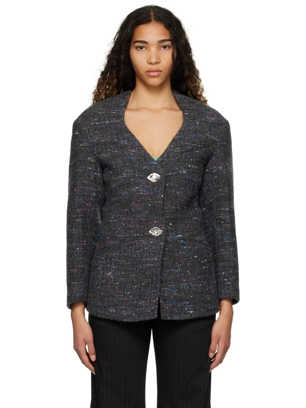 Recycled wool-blend boucle blazer. · V-neck · Twist-lock closure · Welt pockets · Darts at front and back · Full twill lining Supplier color: Phantom Body: 70% recycled wool, 24% polyamide, 6% viscose. Lining: 100% viscose. Made in Portugal 231144F057002