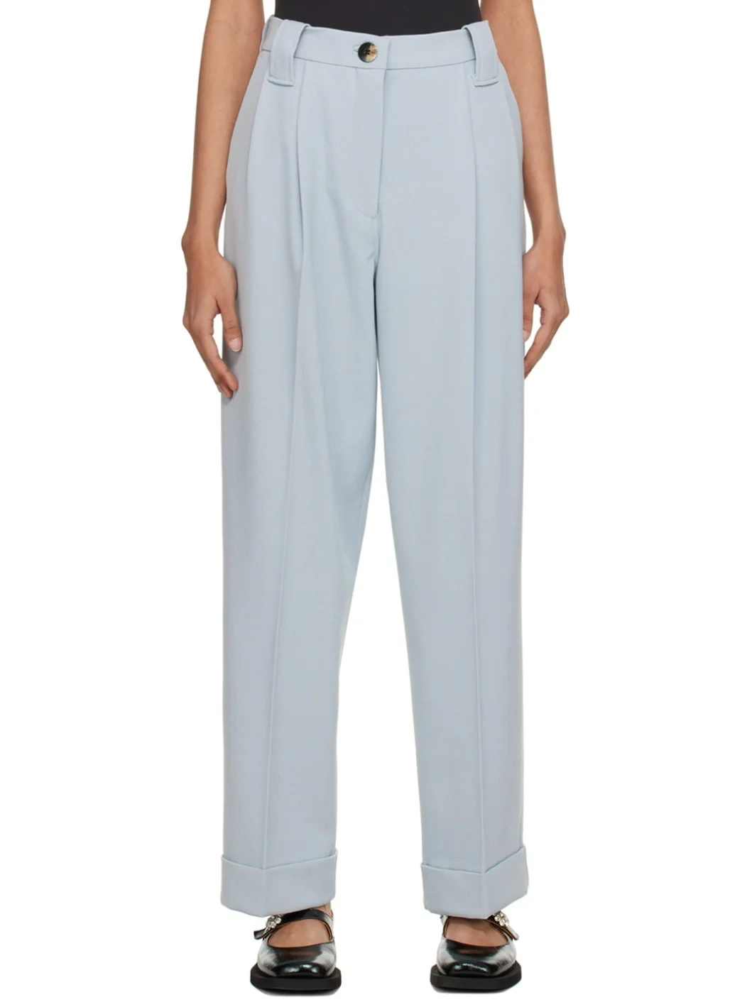 Stretch recycled polyester and wool-blend twill trousers. · Belt loops · Four-pocket styling · Zip-fly · Pleats at front · Creased legs · Rolled cuffs Supplier color: High-rise Body: 54% recycled polyester, 44% wool, 2% elastane. Lining: 100% cotton. Made in Portugal 231144F087009