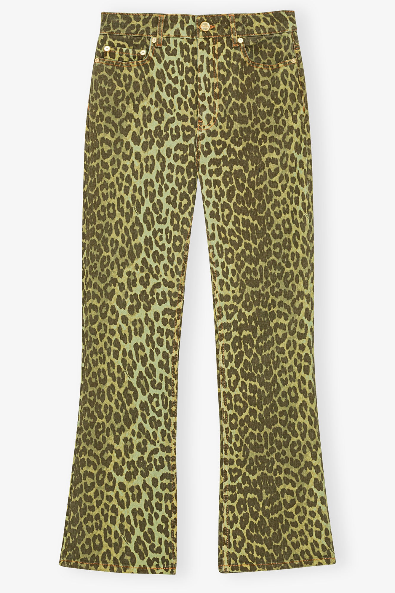 These Green Leopard Betzy Cropped Jeans are fitted at the waist, hip and thighs and flares out from the knee. They feature a 5-pocket style with a zip and button closure and a GANNI logo at the back pocket. DETAILS - 99% organic cotton, 1% elastane. Learn more about our materials - 5 pocket style with a zip and button closure - GANNI logo at the back pocket Made in: Turkey Product ID: J1771 SIZE & FIT - Straight fit