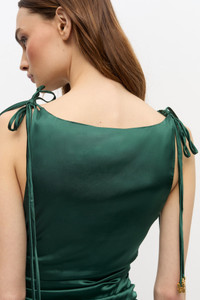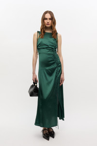 GREEN SATIN GATHERED DRESS