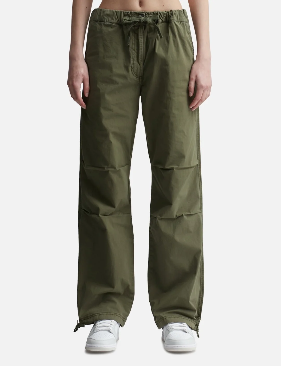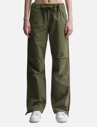 GREEN WASHED COTTON CANVAS DRAWSTRING PANTS