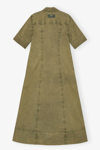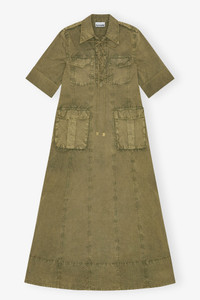 This dress features a washed look with a lace-up safari collar, mid-length sleeves, 4 front pockets and a GANNI logo patch at back. DETAILS - 97% organic cotton, 3% elastane. Learn more about our materials - Washed finish - Lace-up safari collar - Mid-length sleeves - 4 front pockets - GANNI logo patch Made in: India Product ID: W0499 SIZE & FIT - Regular fit - Kathia is 5’10” and wears a size US 4 - For personalised guidance on sizing and fit, contact our Customer Service team - here - .
