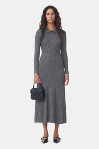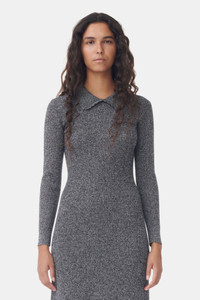 This Grey Collar Maxi Dress is made from merino wool and cashmere. The dress is designed for a regular fit and features a collar with decorative edges, long sleeves and an embroidered GANNI logo at the front. DETAILS - 70% merino wool, 30% cashmere. Learn more about our materials - Slip-on style - Collar with decorative edges - Long sleeves - Embroidered GANNI logo at the front Made in: China Product ID: K2115 SIZE & FIT - Designed for a regular fit with a slightly defined waist - Fits true to size, take your normal size - Mediumweight, soft fabric - Zoey is 5’10” and wears a size S