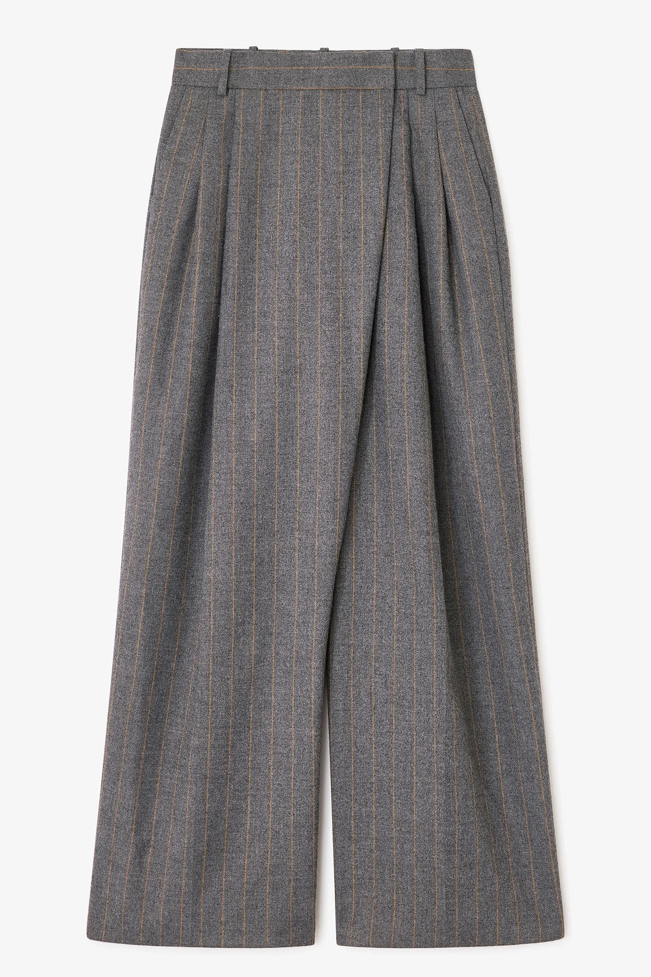 These pants feature a hook-and-eye closure, belt loops, side pockets and a cross-over front detail. DETAILS - 42% wool, 41% recycled polyester, 17% VISCOSE ECOVERO™. Learn more about our materials - Lining composition: 57% Acetate 43% Viscose - Stripe print - Hook-and-eye closure - Belt loops - Side pockets - Cross-over front detail Made in: Portugal Product ID: W0761 SIZE & FIT - Relaxed fit - Lena is 5’9” and wears a size US 4 - For personalised guidance on sizing and fit, contact our Customer Service team - here - .