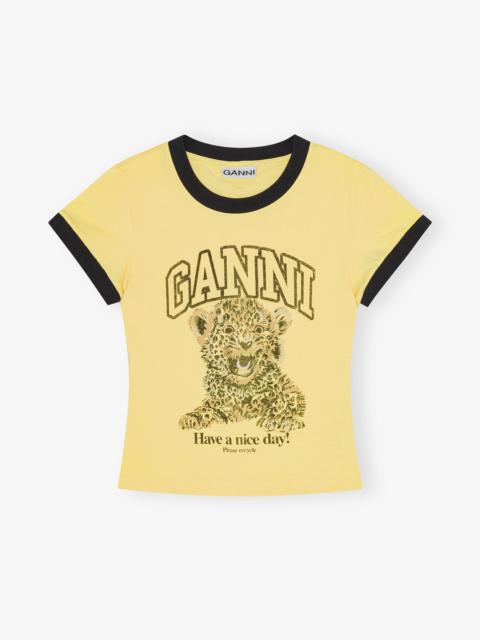 This T-shirt features a round neckline, short sleeves and an embroidered heart and GANNI logo. DETAILS - 100% organic cotton. Learn more about our materials - Washed texture - Round neckline - Short sleeves - Embroidered heart and GANNI logo - 'Have a nice day! Please recycle' message Made in: Portugal Product ID: T4254 SIZE & FIT - Slim fit - Kathia is 5’10” and wears a size S