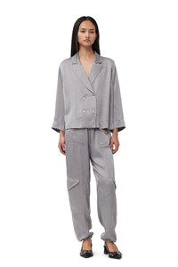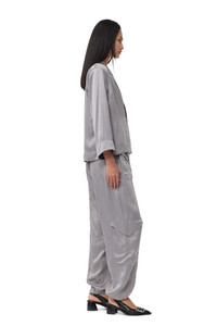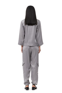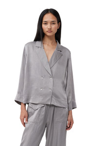 This Grey Washed Satin Shirt is made from a blend of LENZING™ECOVERO™ viscose. The shirt is designed for a regular fit and features a collar, V-neckline, long sleeves and a double-breasted button closure. DETAILS - 50% LENZING™ECOVERO™ viscose, 50% cupro - Collar - V-neckline - Long sleeves - Double-breasted button closure - This product contains LENZING™ ECOVERO™ viscose. LENZING™ ECOVERO™ viscose is a responsible viscose fiber with a proven lower environmental impact, certified by the EU Ecolabel. LENZING™ and ECOVERO™ are trademarks of Lenzing AG Made in: China Product ID: F8610 SIZE & FIT - Designet i et regular fit - Designed for a close fit over the shoulders, cut straight from the chest - Fits true to size, take your normal size - Lightweight, soft satin fabric - Mona is 5’9” and wears a size US 4