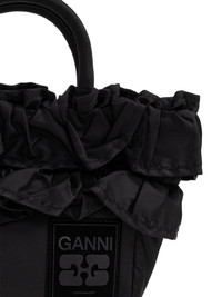 ruffle-detail tote bag Highlights - Black - Top handle - Ruffled trim - Logo patch - Magnetic fastening Imported Composition Recycled Nylon 100% SIZE & FIT Measurement HEIGHT 6.69 in(17 cm) WIDTH 7.87 in(20 cm)