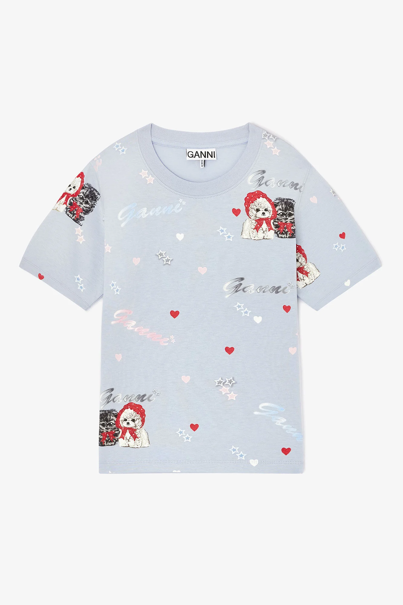 This T-shirt features a round neckline, short sleeves, an animal graphic with a GANNI logo. DETAILS - 100% organic cotton. Learn more about our materials - Round neckline - Short sleeves - Animal print graphic - GANNI logo Made in: Portugal Product ID: T4416 SIZE & FIT - Regular fit - Lisa Lu is 5’10” and wears a size S