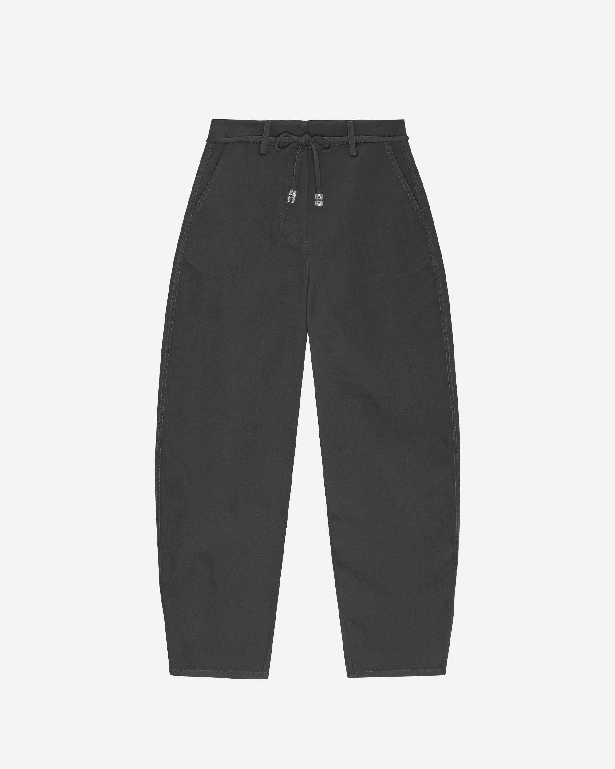 Discover the epitome of relaxed elegance with the GANNI Heavy Twill Curved Pants, an essential piece from the CLOTHING category. Crafted with meticulous attention to detail, these pants boast a luxurious heavyweight twill fabric that offers both durability and a sophisticated drape. The curved silhouette ensures a contemporary yet timeless look, making them a versatile addition to any wardrobe. Designed for those who appreciate the intersection of style and comfort, the GANNI Heavy Twill Curved Pants transition seamlessly from day to night. Perfect for pairing with your favorite t-shirt or dressing up with a structured top, this piece embodies the effortless style ethos that GANNI is renowned for. Elevate your fashion game with these iconic pants and step out with confidence. Size & Fit: The model is 1.85 m and is wearing size S Sizing: WOMENS Article Number: W0238 Product color: Phantom