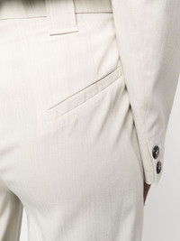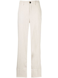 high-waisted straight-leg trousers Cut for a straight leg, these high-waisted tailored trousers from GANNI are crafted from a blend of recycled polyester in a neutral ecru hue. Highlights - Ecru - Recycled polyester blend - High waist - Belt loops - Front button and zip fastening - Rear jetted pocket - Pressed crease - Straight leg Imported Composition Recycled Polyester 53%, Viscose 46%, Spandex/Elastane 1% SIZE & FIT Model measurements Height 5 ft 10 in(1.79 m) Bust/Chest 33.07 in(84 cm) Hips 35.03 in(89 cm) Waist 24.4 in(62 cm) FittingInformation This piece fits true to size. We recommend you get your regular size Designed to be fitted at the waist and hips, loose over the leg Made with a mid-weight stretch fabric Washing instructions Machine Wash