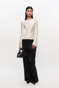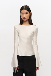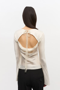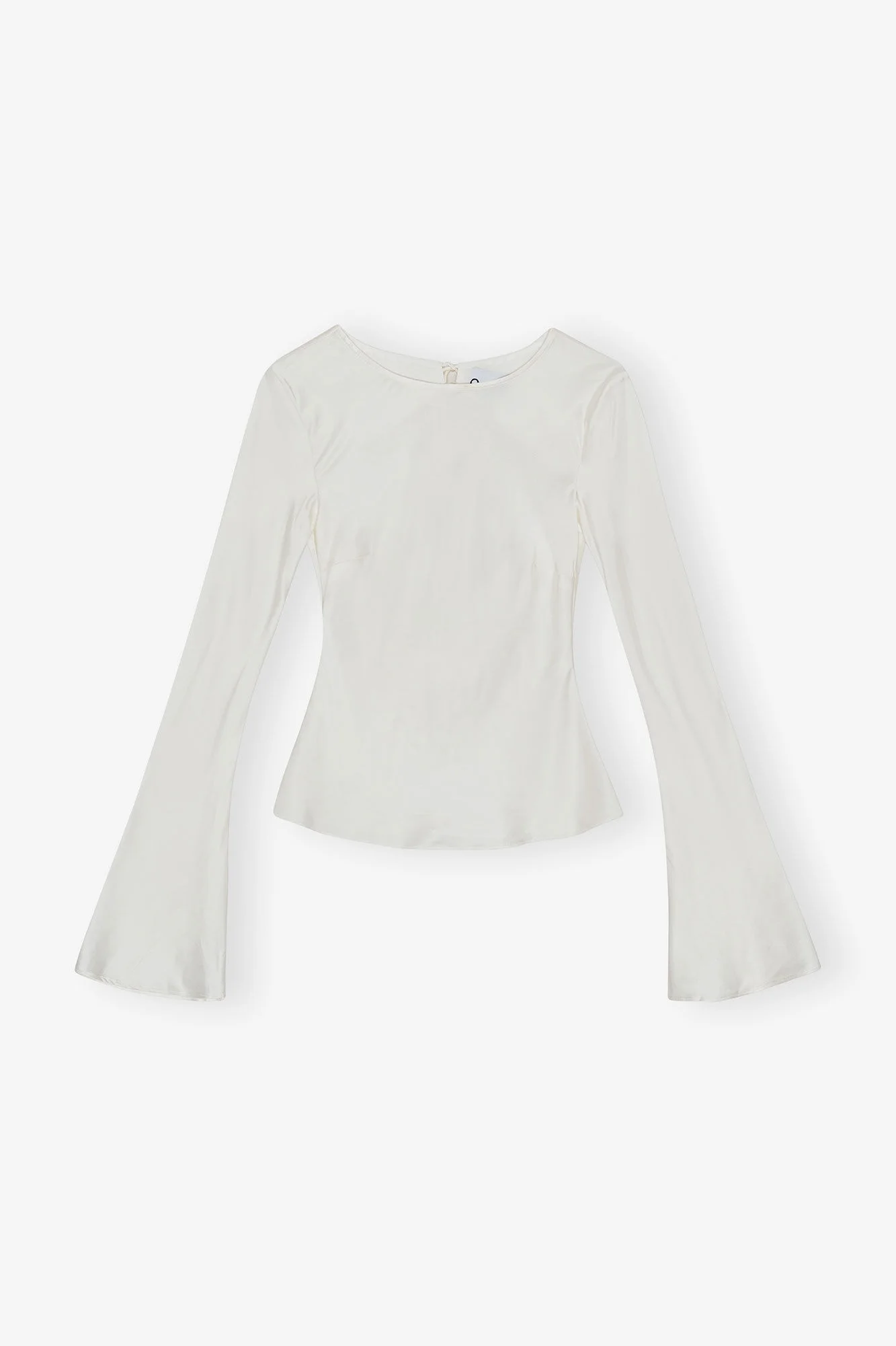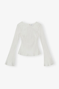 This blouse features a round neck, long sleeves, open back and tie-strings with silver-tone GANNI Butterfly logo finish. DETAILS - 96% viscose, 4% elastane. Learn more about our materials - Lining composition: 97% Polyester 3% Elastane - Round neck - Long sleeves - Tie-string closing - Open back - GANNI Butterfly logo Made in: China Product ID: W0850 SIZE & FIT - Slim fit - Chen is 5’10” and wears a size US 4 - For personalised guidance on sizing and fit, contact our Customer Service team - here - .