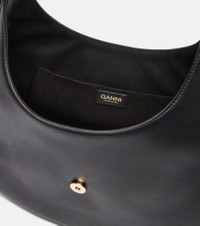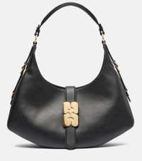 Ganni showcases a flair for modern design with the Kat shoulder bag, crafted in a distinctive accordion silhouette and elevated by gold-toned accents. This Medium design features an open interior secured by the brand's signature butterfly clasp. Product Details - Material: leather, fabric - Lining: fabric - Made in China - Designer color name: Black - Item color: black - Top handle - Hardware color: gold - Internal details: internal slot pocket, single compartment - Closure: magnetic fastening - Includes: dust bag - Item number: P01067293 Size & Fit - Height 19cm-7.5" - Width 38cm-15" - Depth 8cm-3" - Length of handles 37cm-14.5"