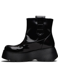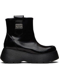 Ankle-high patent faux-leather boots. · Moc toe · Pull-loops at collar · Logo hardware at outer side · Grained faux-leather lining · Logo embossed at foam rubber platform midsole · Treaded rubber sole · Platform: H1.5" · Heel: H2.5" Supplier color: Black Upper: synthetic. Sole: rubber. Made in Portugal 252144F113007