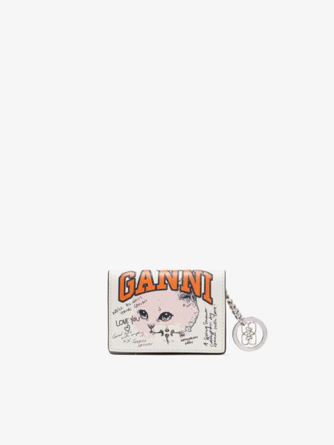 This card holder features a kitty graphic print, a GANNI Butterfly hardware logo and a silver-tone keychain ring. DETAILS - 65% recycled leather, 19% polyurethane fibre, 16% polyester. Learn more about our materials - Lining composition: 65% Recycled Cotton 35% Cotton - Kitty graphic print - GANNI Butterfly hardware logo - Silver-tone keychain logo ring - Multiple card compartments Made in: China Product ID: A7039 SIZE & FIT - Height: 7 cm - Width: 9.8 cm - Depth: 2.5 cm - For personalised guidance on sizing and fit, contact our Customer Service team - here - .