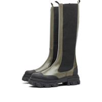 GANNI puts a stylish twist on these khaki green Chelsea boots. Crafted from sleek leather, they’re fitted with elastic inserts for a signature Chelsea look, whilst underfoot you’ll find a chunky rubber sole which is synonymous with the chic Danish brand. Meanwhile, embossed branding signs off the look. - 100% Calf Skin Leather - Elastic Inserts - Pull Tabs - Rubber Sole - Heel Height: 5cm / 1.9"