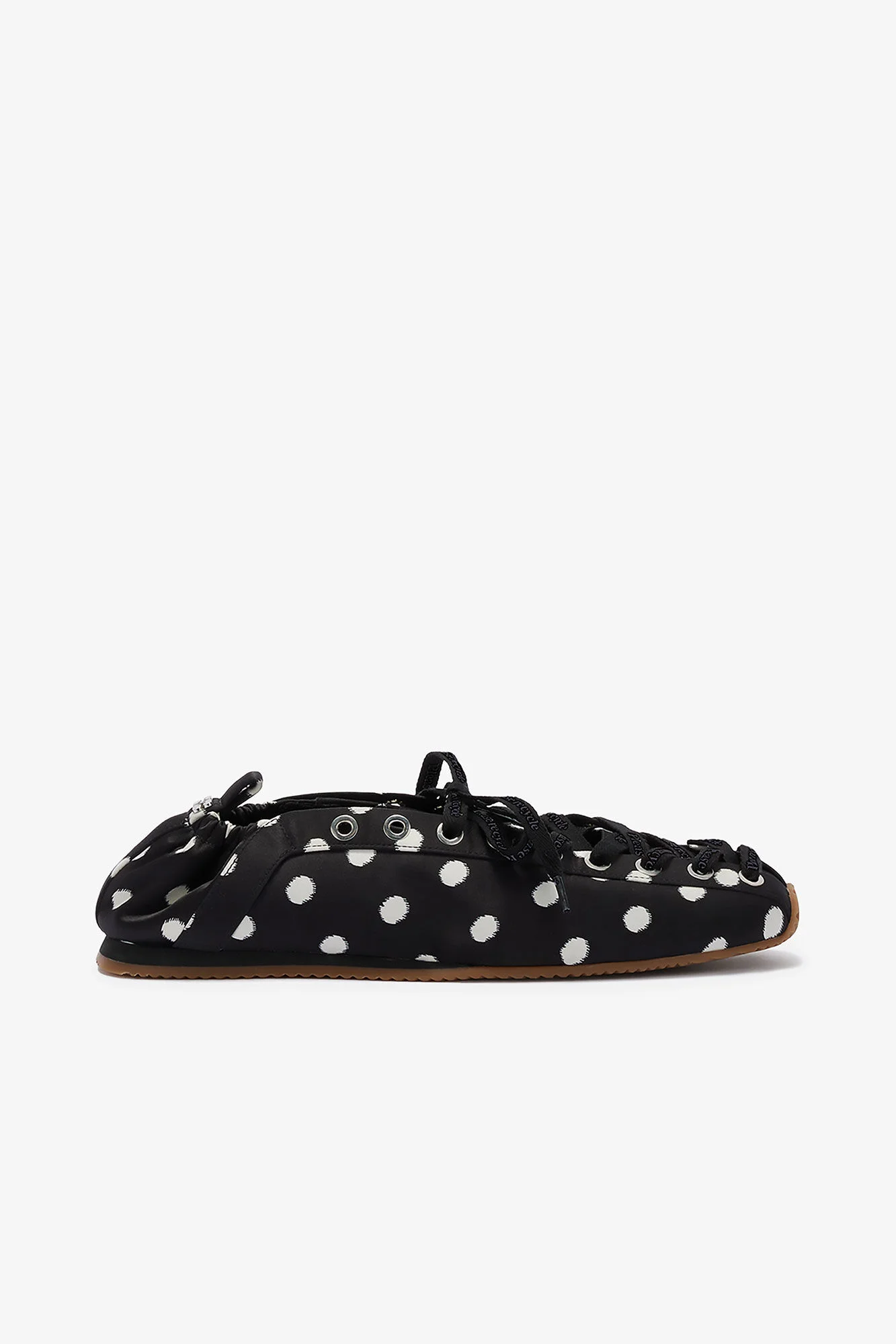 LACE UP SPORTY BALLERINA IN BLACK POLKA DOT