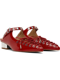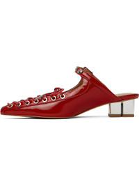 Crinkled patent faux-leather mules in red. · Pointed toe · Lace-up closure · Pin-buckle strap at vamp · Logo embossed at padded faux-leather footbed · Logo graphic heel with rubber injection · Faux-leather sole with rubber injection · Logo-engraved silver-tone hardware · Heel: H1.5" Supplier color: Racing red Upper: synthetic, textile. Sole: synthetic, rubber. Made in Brazil 251144F122006