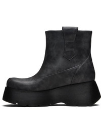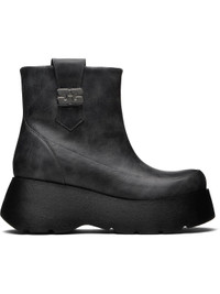 Ankle-high grained faux-leather boots. · Smudging throughout · Moc toe · Pull-loops at collar · Logo hardware at outer side · Grained faux-leather lining · Logo embossed at foam rubber platform midsole · Treaded rubber sole · Platform: H1.5" · Heel: H2.5" Supplier color: Ebony Upper: synthetic. Sole: rubber. Made in Portugal 252144F113006