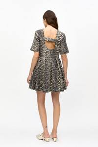 This Leopard Cotton Tweed Mini Dress features a round neckline, short sleeves, a pleated skirt and an open back. DETAILS - 100% organic cotton. Learn more about our materials - O-neckline - Short sleeves - Open back - Pleated skirt Made in: China Product ID: W0362 SIZE & FIT - Denise is 5’9” and wears a size US 4
