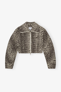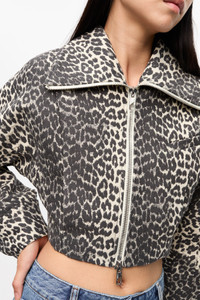 This Leopard Curve Sleeve Short Jacket features a large collar, curved sleeves and a double zip closure. DETAILS - 100% organic cotton. Learn more about our materials - Lining composition: 100% recycled polyester - Large collar - Curved sleeves - Double zipper Made in: China Product ID: W0235 SIZE & FIT - Cara is 5’9” and wears a size US 4