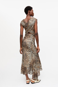 LEOPARD MARL MESH LONG RUCHED CROSSOVER DRESS