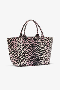 This tote bag features top handles, one large compartment, and a printed sequin GANNI logo with the phrase 'Have a nice day! Please recycle'. DETAILS - 100% Recycled Cotton Learn more about our materials - Lining composition: 100% Recycled Cotton - Top handles - GANNI logo - One compartment - Inner zipped pocket Made in: India Product ID: B2110040 SIZE & FIT - Height: 32 cm - Width: 16 cm - Depth: 54 cm - Designed to hold an iPhone 16 Pro Max, wallet, sunglasses, keys, water bottle, pouch, gym clothes, 15” laptop