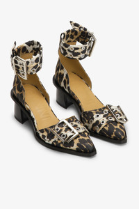 These Leopard Print Feminine Buckle Open Cut Pumps feature buckle-fastening ankle straps, a pointed toe and two silver-tone buckles with matching eyelets. DETAILS - 70% recycled polyester, 30% polyester. Learn more about our materials - Buckle-fastening ankle straps - Pointed toe - Two silver-tone buckles with eyelets Made in: Portugal Product ID: S2863 SIZE & FIT - Fits true to size, take your normal size
