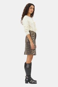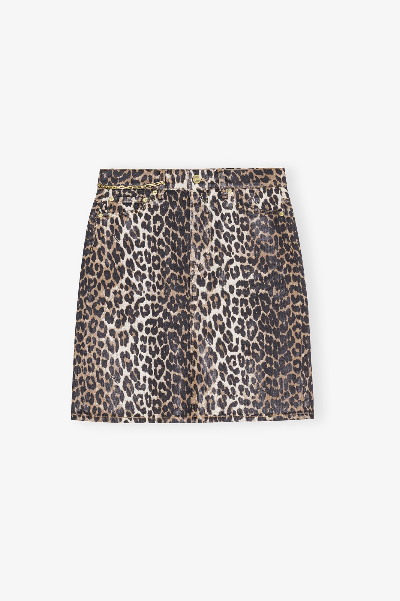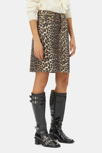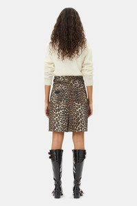 This skirt in leopard print features 5 pockets with belt loops, a zip and button closure, a GANNI logo at the back pocket and a gold chain detail at front pocket. DETAILS - 99% organic cotton, 1% elastane. Learn more about our materials - Zip and button closure - 5 pockets - Belt loops - GANNI logo at the back pocket - Zip and button closure - 5-pocket style - GANNI logo on back - Gold chain detail Made in: Turkey Product ID: J1607 SIZE & FIT - Regular fit - Midi length - Zoey is 5’10” and wears a size S