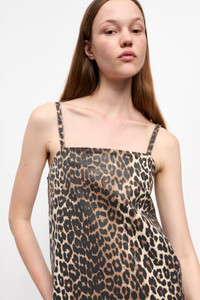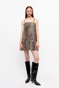 This dress in leopard printed foil features a square neckline, straps and a flared skirt. DETAILS - 99% organic cotton, 1% elastane. Learn more about our materials - Square neckline - Thin straps - Pleated hem Made in: Turkey Product ID: J1661 SIZE & FIT - Regular fit - Mini length - Noor is 5’11” and wears a size US 4
