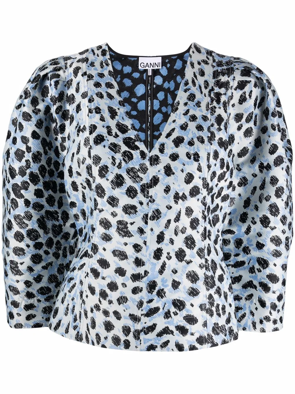 leopard-print puff-sleeve top Egret leopard-print puff-sleeve top from GANNI. Highlights - Egret - All-over leopard print - V-neck - Three-quarter length puff sleeves Imported Composition Recycled Polyester 82%, Polyamide 18% SIZE & FIT Model measurements Height 5 ft 10 in(1.78 m) Bust/Chest 30.7 in(78 cm) Hips 35.82 in(91 cm) Waist 24.01 in(61 cm) FittingInformation This piece fits true to size. We recommend you get your regular size Cut for a slim fit Made with a mid-weight non-stretch fabric Washing instructions Machine Wash