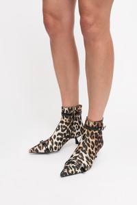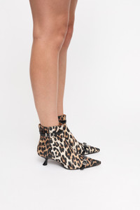 These Leopard Satin Eyelets Kitten Heel Boots feature a pointed toe, multiple silver-tone buckles with eyelets and kitten heels. DETAILS - 70% recycled polyester, 30% polyester. Learn more about our materials - Ankle boots - Pointed toe - Multiple silver-tone buckles with eyelets - Kitten heels Made in: Portugal Product ID: S2883