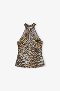 This sleeveless Leopard Print Satin Top features a front knot detail that creates a keyhole cutout and a button closure at the back. DETAILS - 95% viscose, 5% spandex. Learn more about our materials - Sleeveless - Button closure at the back - Cut-out detail Made in: China Product ID: W0323 SIZE & FIT - Sim fit - Noor is 5’11” and wears a size US 4